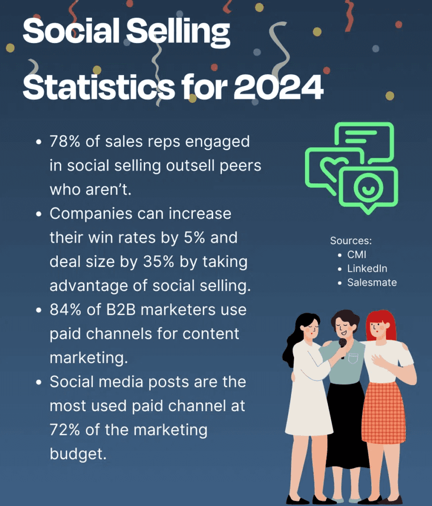 • 78% of sales reps engaged in social selling outsell peers who aren’t. (LinkedIn)