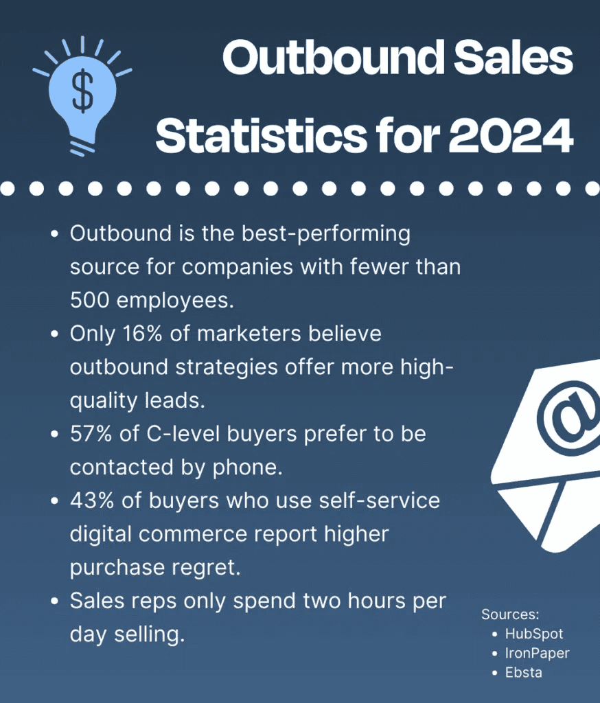 Outbound sales refer to salespeople proactively reaching out to prospects via cold outreach or referrals. Below are some current statistics that can help you in your outbound sales: