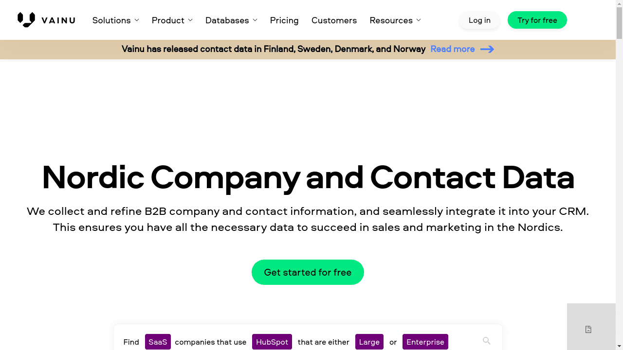 Vainu is a powerful B2B data platform relied on by top companies for better business results. With access to over 5 million companies, 7 million decision-makers, 300+ data points, and 900+ integrations, Vainu provides valuable insights for targeting ideal customers and engaging with the most valuable accounts.
