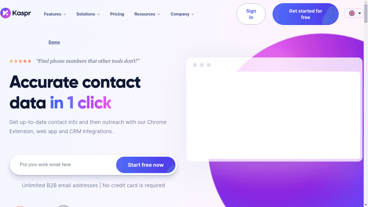 | Kaspr | Unlimited B2B emails; Real-time data from 150 providers; Lead management | Limited phone/export credits in paid plans; Extension dependency | Free Plan; Starter, Business, and Org plans available | G2: 4.4/5; Capterra: 4.6/5 |
