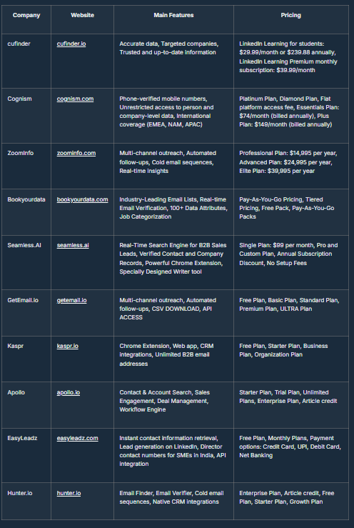 Looking for alternatives to cufinder? Look no further! We have compiled a list of 9 top alternatives that you can explore. Whether you’re looking for new features, better user experience, or just want to try something different, these options have got you covered. Read on to discover some great options to consider for your next cufinder alternative.