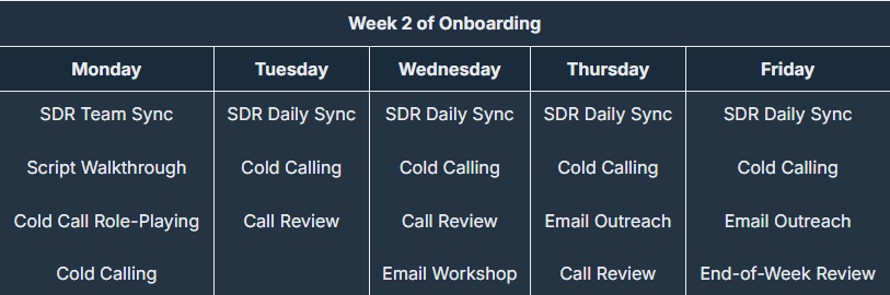 Here’s a sample two-week onboarding system from Vouris: